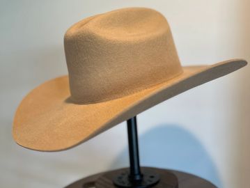 Our premium 100% Australian wool cattleman crown shape with a straight crease down the middle. Brim is slightly upturned on the sides.